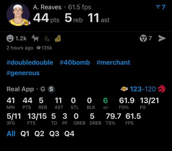 湖人压哨三分绝杀!里夫斯狂轰44+5+10,老詹亲手终结神级纪录