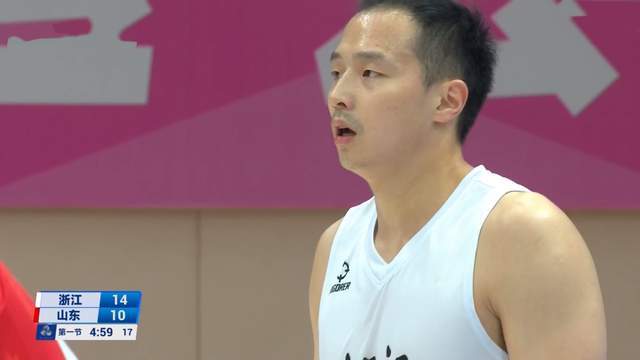 浙江男篮先把外线打开了,进攻能打出来的战术更多,山东男篮的5分全部来自于内线,每一球都是低位强攻,打进太难。李祥波打的非常聪明,内线高度不占优势,三分线外突施冷箭,山东男篮的前13分,全部来自于两名内线球员。王岚钦中距离干拔三分命中,将比分追至14-17,外线投开了,两队打的十分胶着。