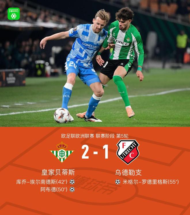 贝蒂斯2-1乌德勒支,米格尔-罗德里格斯中场吊射,阿布德制胜