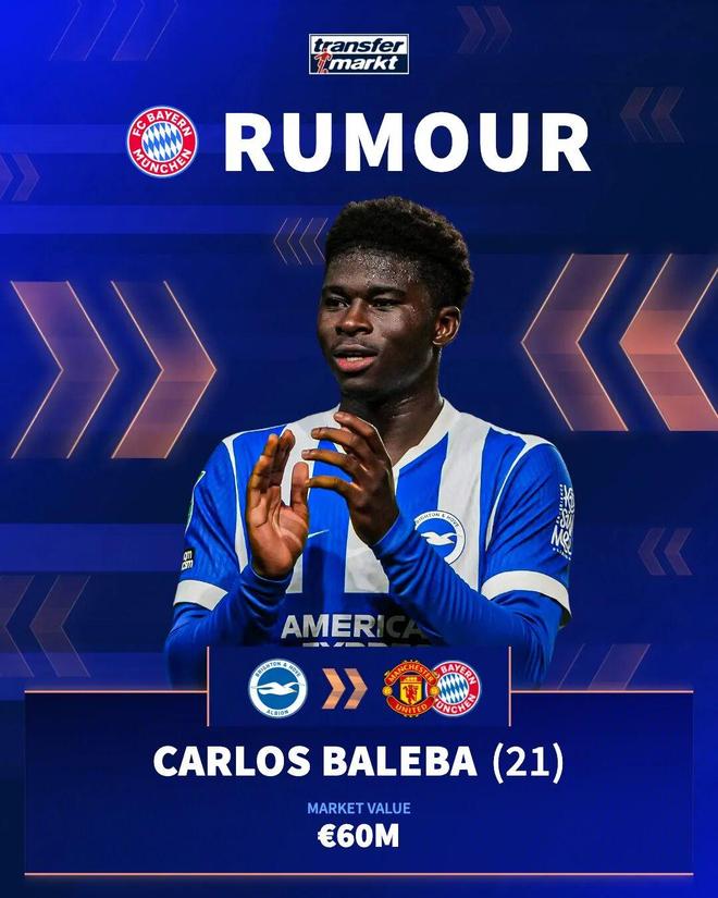 去年夏窗,曼联曾与21岁的喀麦隆国脚巴莱巴达成个人协议,但布莱顿为之标价1.2亿英镑。原本人们认为,巴莱巴未来的转会费也要超过1亿英镑,但他本赛季的表现江河日下,所以转会费将会更低。