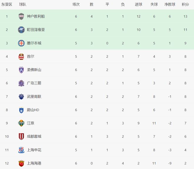 随着蓉城2-2遭神户绝平,亚冠最新积分榜:海港0-0,基本面临出局